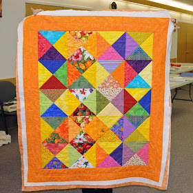 Kathy showed our members the completed comfort quilts returned to the meeting.