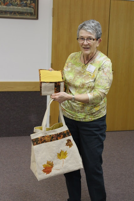 The program for the evening was Machine Applique and the new Comfort Block is the Orange Peel block. The guild gave out the fusible web and background fabrics, you just supply the bright fabric for the orange peel design.